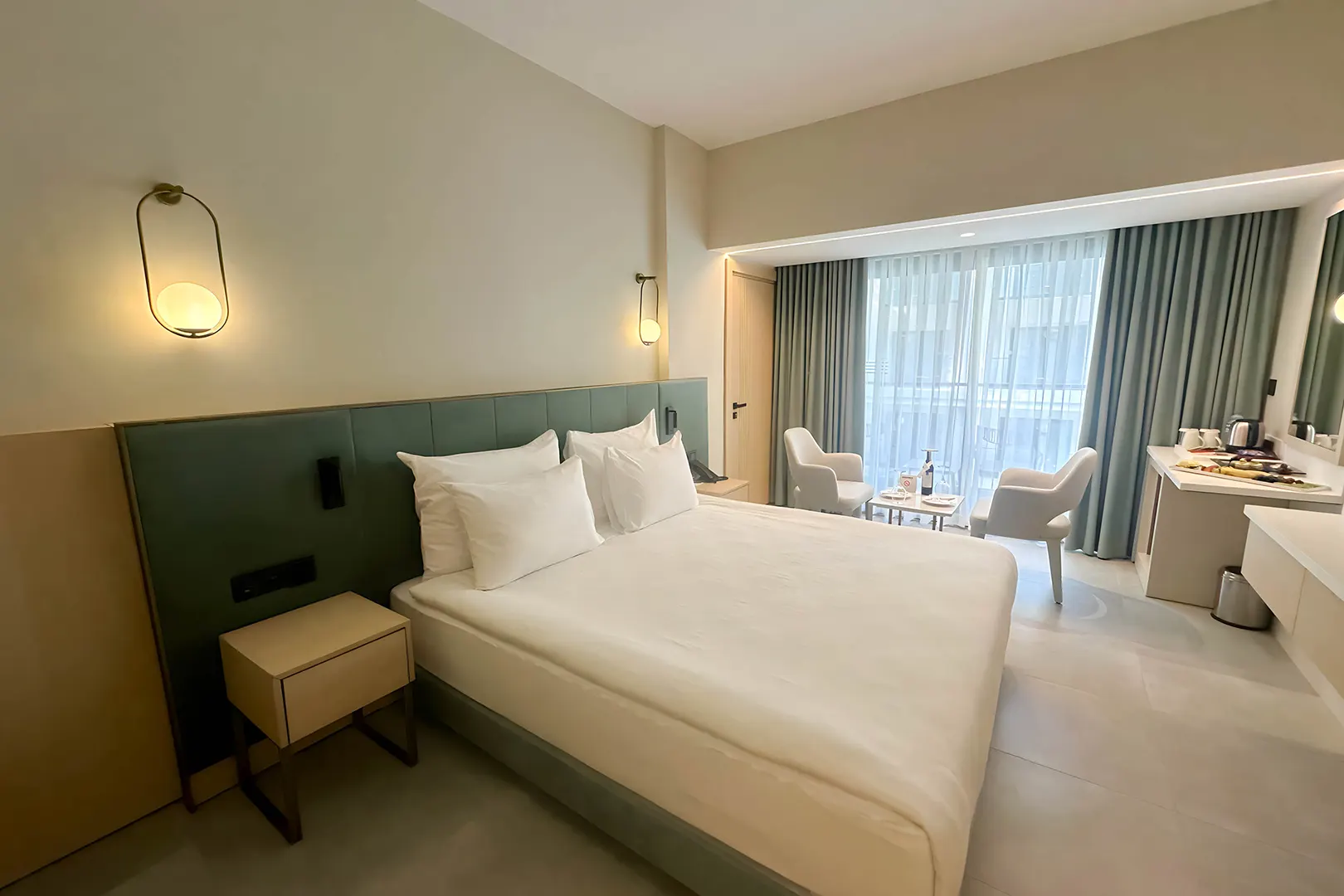 Konforlu ve geniş tasarımıyla Deluxe Bağlantılı Aile Odası, aileler için mükemmel bir konaklama deneyimi sunar. Bahçe, dağ ve iç bahçe manzarasına sahip odalar, huzurlu bir atmosferde dinlenme imkânı sağlar.